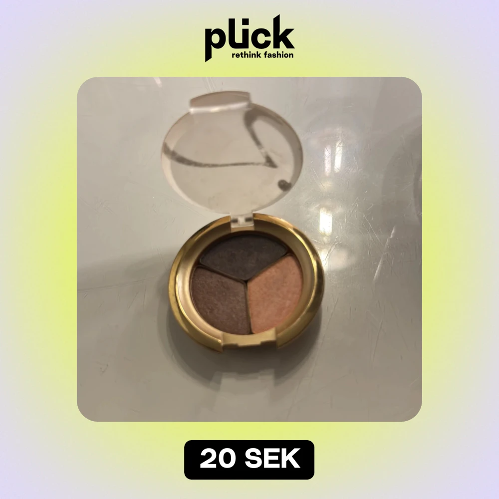 Säljer en elegant ögonskugga från Jane Iredale i nyansen Brown Sugar. Den kommer i en snygg guld- och transparent förpackning med tre olika färger: mörkbrun, ljusbrun och beige. Perfekt för en naturlig look eller för att skapa djupare ögonmakeup. Förpackning är lite sliten