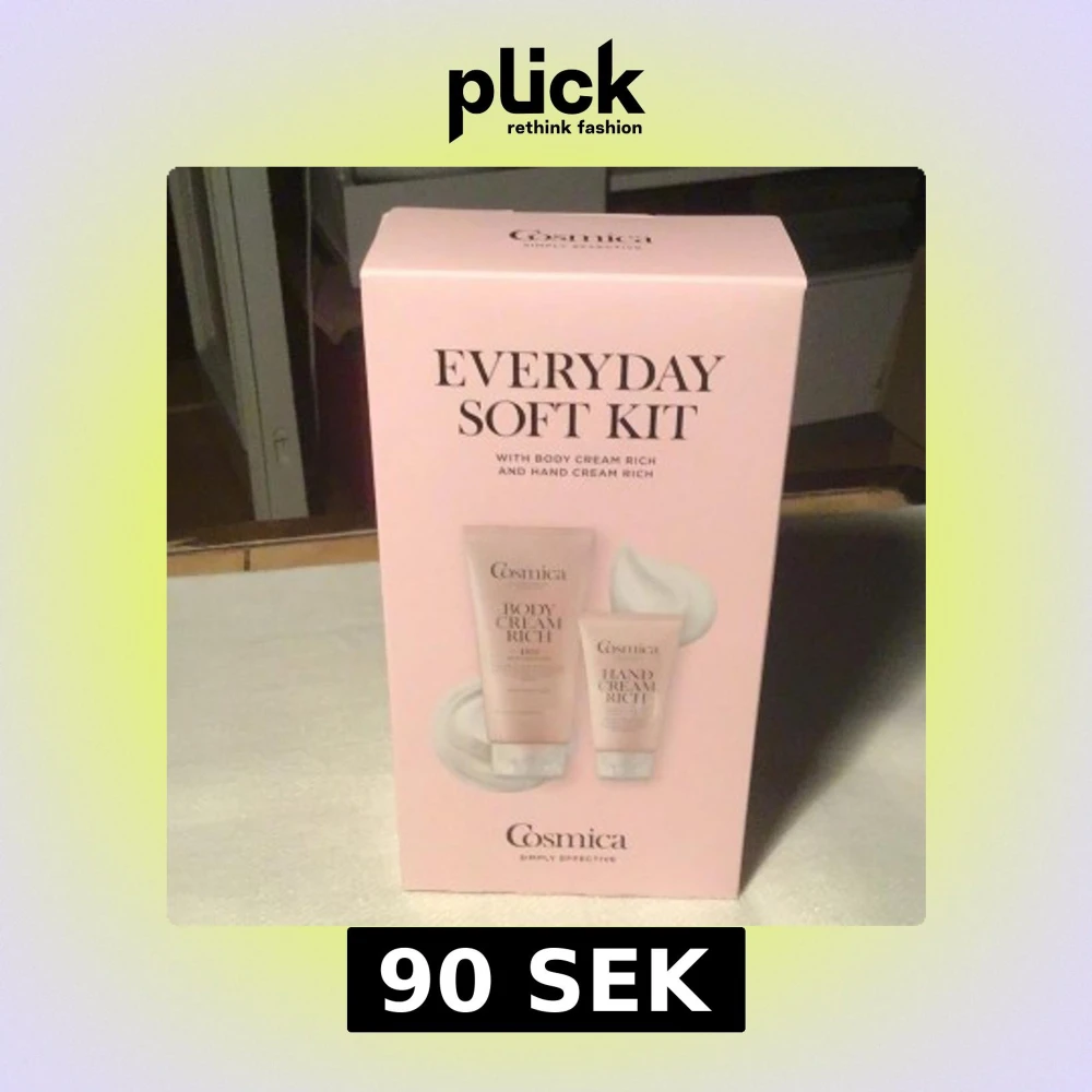 Säljer ett rosa Everyday Soft Kit från Cosmica med Body Cream Rich (200 ml) och Hand Cream Rich (75 ml). Båda produkterna kommer i tuber och är mildt parfymerade, perfekta för att ge huden extra fukt och mjukhet. Snygg förpackning som passar bra som present.