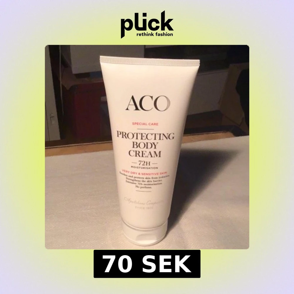 ACO Protecting Body Cream är en vit, parfymfri kroppskräm i en mjuk plasttub med skruvlock. Den är speciellt framtagen för mycket torr och känslig hud, återfuktar intensivt i upp till 72 timmar och innehåller Triple Moist Complex. Tuben rymmer 200 ml.