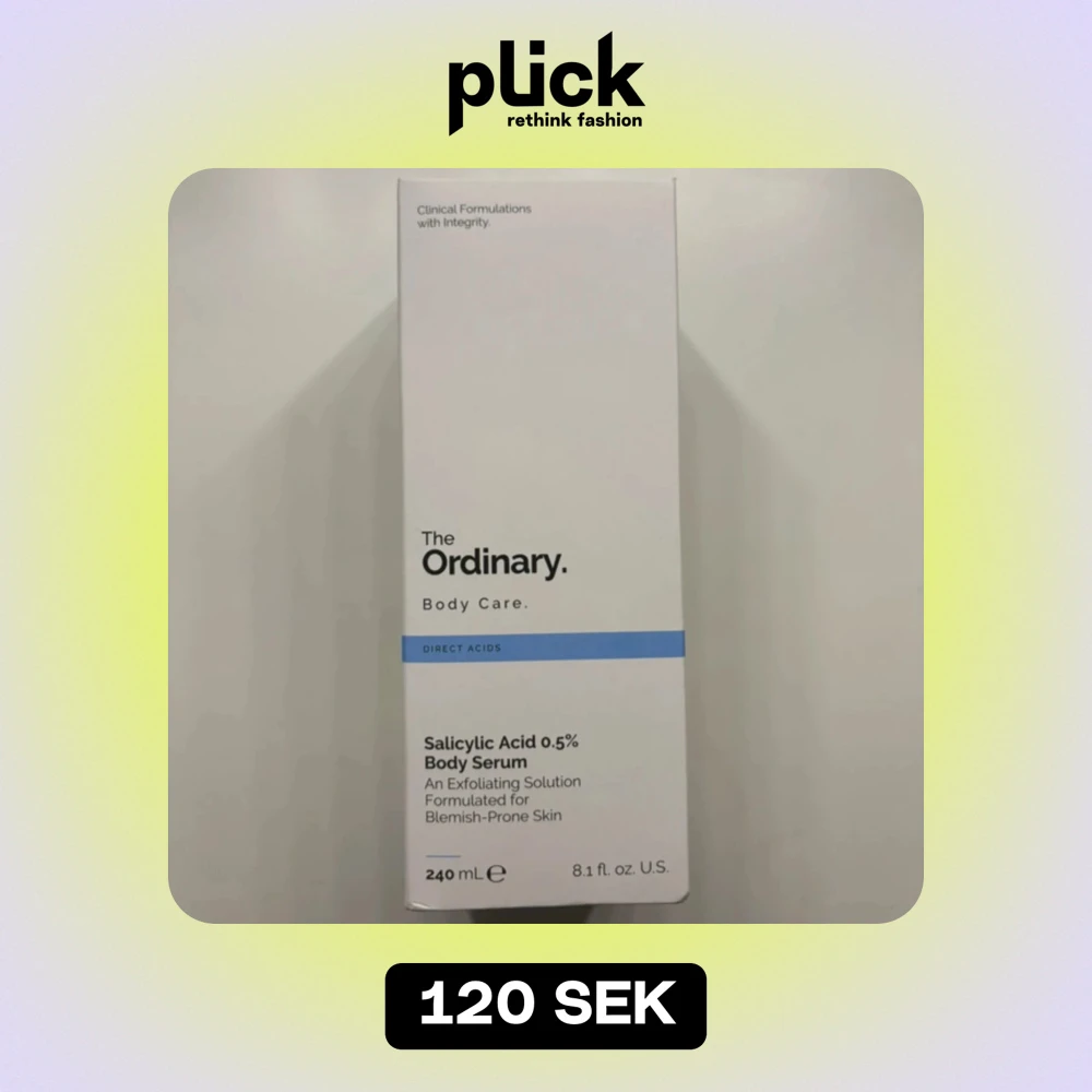 Säljer en flaska The Ordinary Salicylic Acid 0.5% Body Serum. Perfekt för dig med acnebenägen hud som behöver en exfolierande lösning. Kommer i en praktisk flaska med pipett för enkel applicering. Perfekt för att hålla huden ren och fräsch!