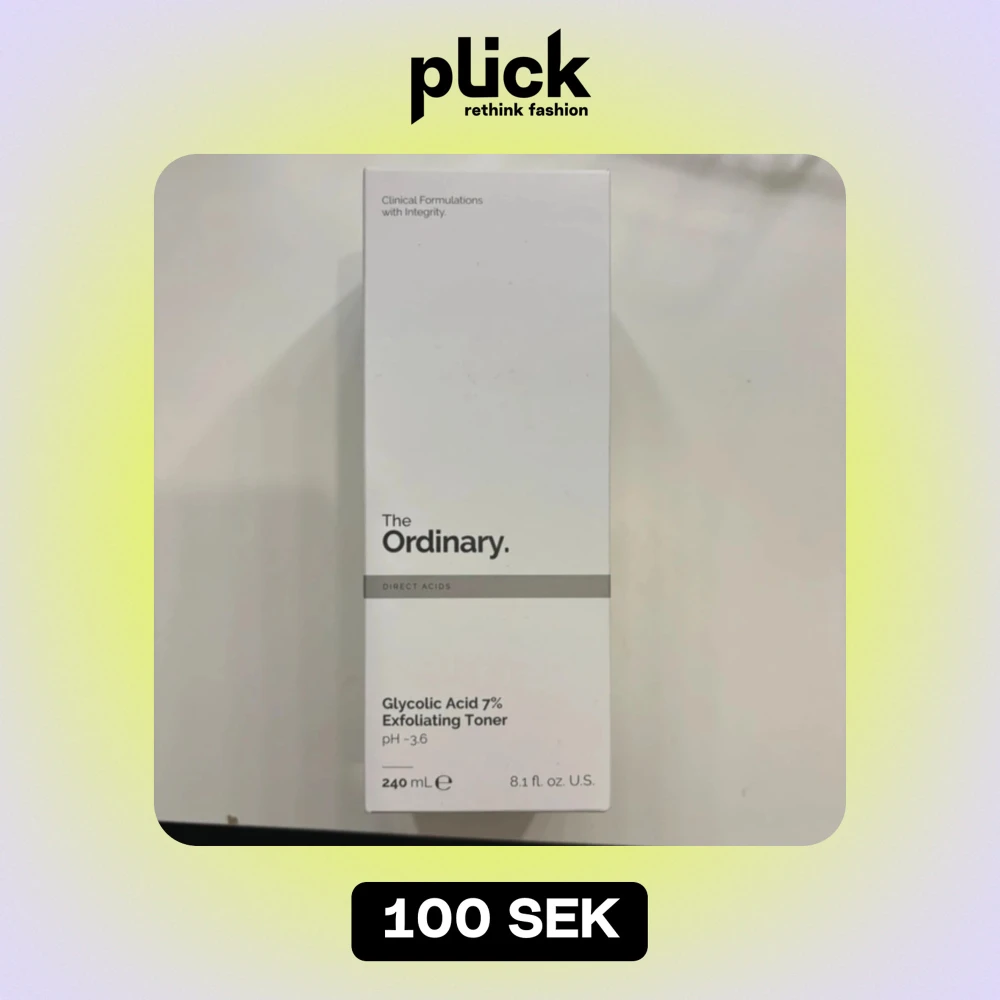Säljer en Glycolic Acid 7% Exfoliating Toner från The Ordinary. Denna toner har ett pH på 3.6 och kommer i en 240 ml flaska. Perfekt för att exfoliera huden och ge en fräsch känsla. Används för att förbättra hudens textur och lyster.