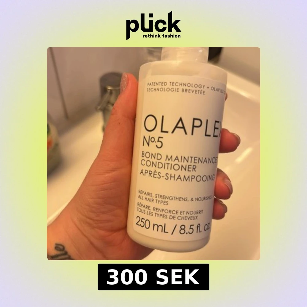 Säljer en flaska Olaplex No.5 Bond Maintenance Conditioner. Denna balsam reparerar, stärker och vårdar alla hårtyper. Flaskan innehåller 250 ml och är perfekt för att hålla håret friskt och starkt.