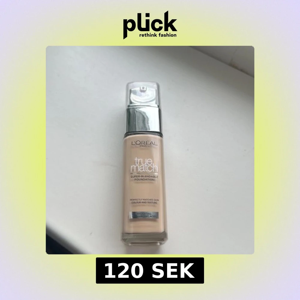 L'Oréal Paris True Match Foundation är en superblendbar foundation som perfekt matchar hudens färg och textur. Den innehåller hyaluronsyra för återfuktning och kommer i en praktisk pumpflaska. Färgen är i 1W tror jag då det inte står vad det är för färg eller nyans. Nypris är 199kr. Ungefär 80-90% av produkten är kvar.