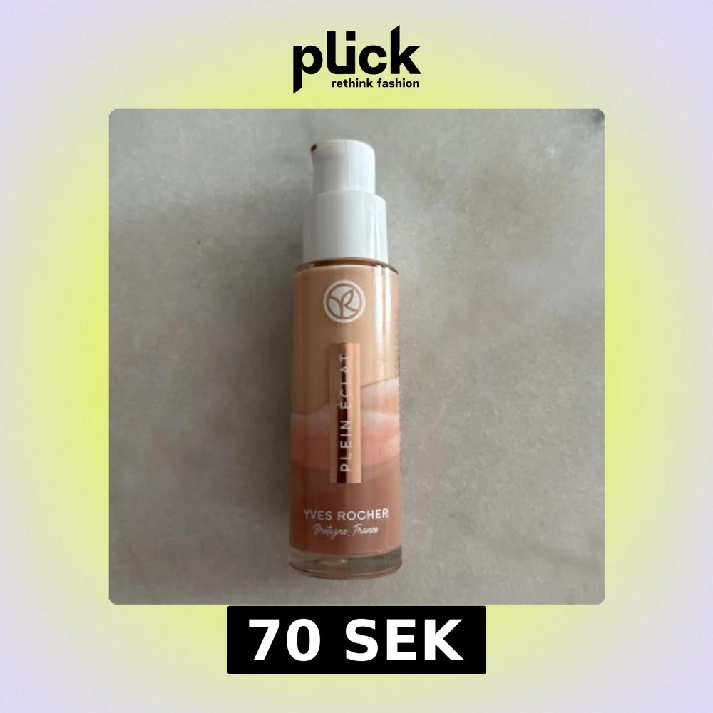 Flytande foundation från Yves Rocher i nyansen Plein Éclat. Kommer i en glasflaska med pump och rymmer 30 ml. Färgen är en varm beige ton som ger en naturlig finish. Perfekt för dig som vill ha en jämn och fräsch bas.