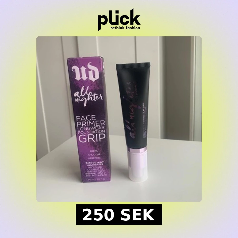 HELT NY, ALDRIG Använt. Urban Decay All Nighter Face Primer är en longwear foundation grip som förbereder, slätar ut och perfekterar huden. Den kommer i en stilren svart tub med lila detaljer och har en volym på 30 ml.