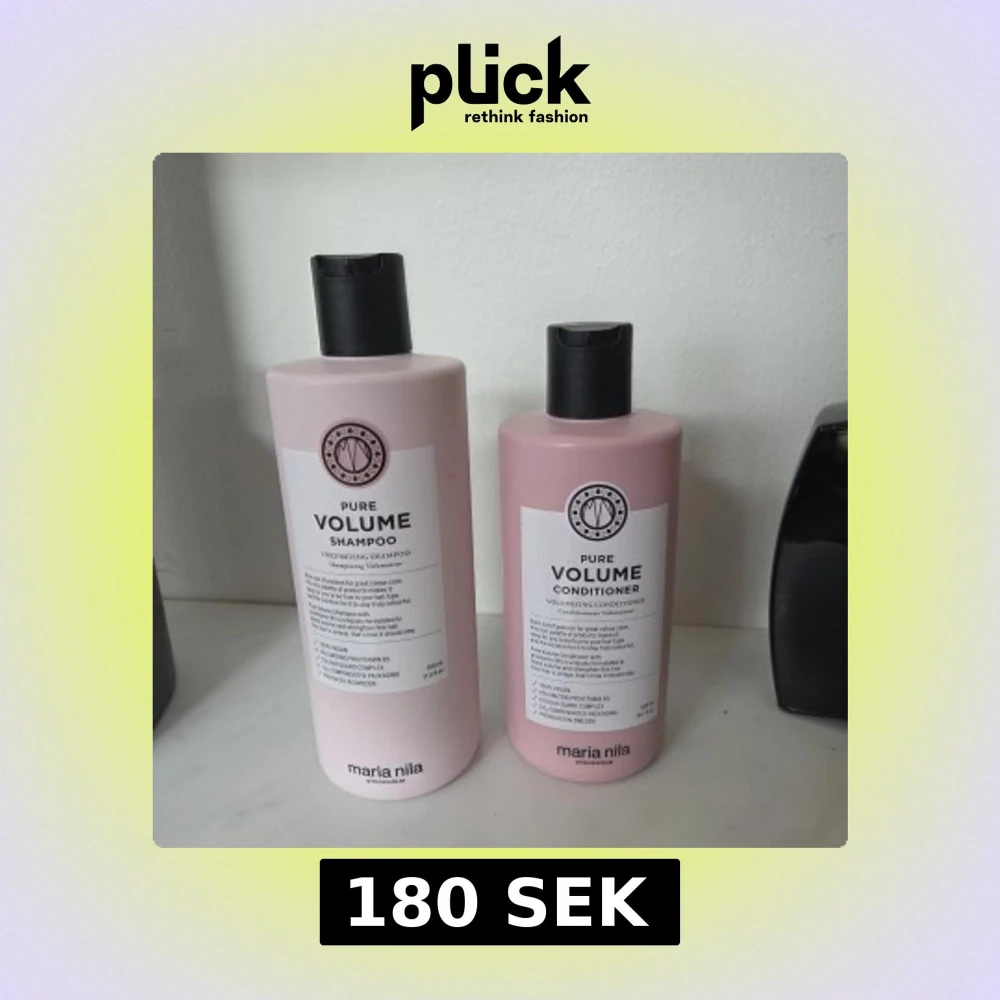 och balsam. Båda produkterna är volymgivande och veganska, perfekta för dig som vill ha fylligare hår. Snygg minimalistisk design och producerade i Sverige. 🌱 Balsam - 300ml, 90% kvar. Shampoo - 350ml, cirka 50% kvar. Kom med ett bud med rätt att neka? 😊