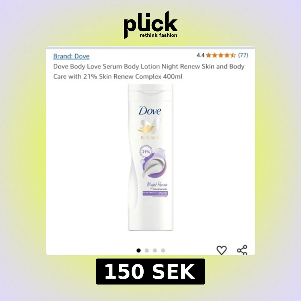 Dove Body Love Night Renew är en kroppslotion med 21% Skin Renew Complex och niacinamid. Kommer i en vit plastflaska med lila och guld detaljer. Innehåller 400 ml och är framtagen för att ge huden extra vård under natten. (50kr styck)
