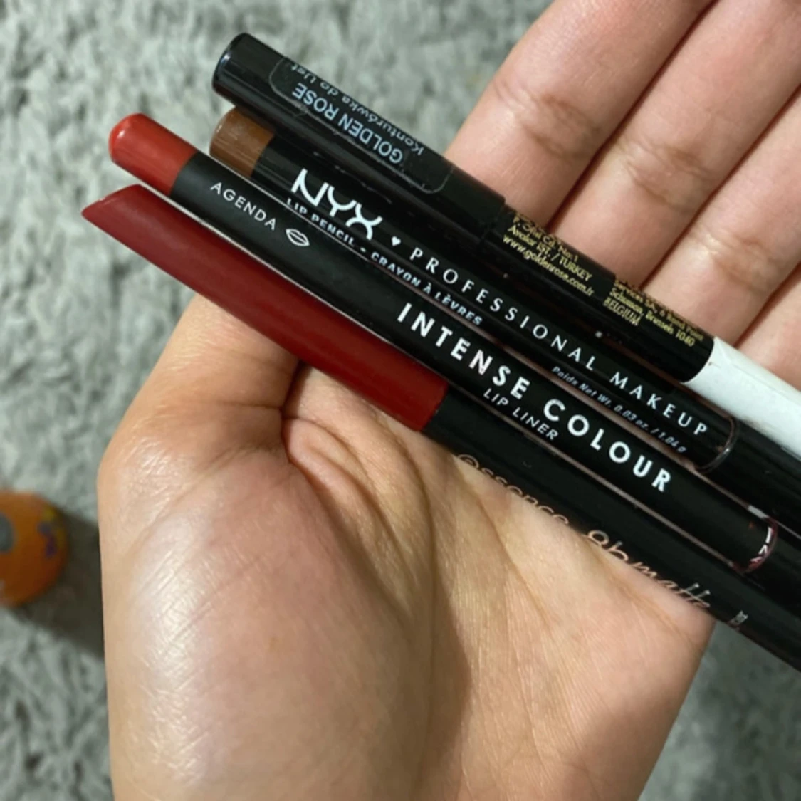 New, not used Essence 8h matte lipliner, 08 dark berry 2€ MUA makeup intense colour lip liner, shade agenda 2€ Nyx lip liner, shade brown 4€ Golden rose lip liner, shade 211, 3€ Prefer to buy together, all for 10€🤗