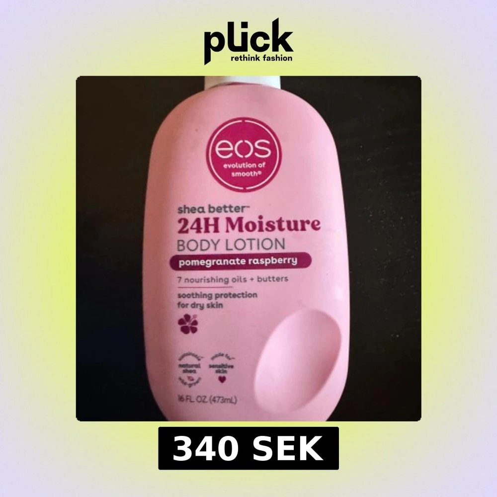Rosa body lotion frÄn EOS med doft av granatÀpple och hallon. InnehÄller sheasmör, 7 nÀrande oljor och smör för att ge lÄngvarig Äterfuktning. Perfekt för torr hud och kÀnslig hud. Stor flaska pÄ 473 ml.