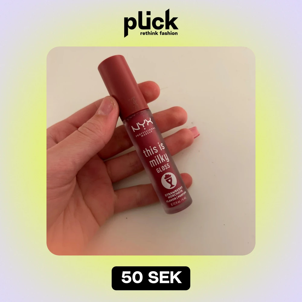 Säljer ett NYX This is Milky Gloss i färgen Strawberry Horchata. Det är ett läppglans med en mjuk och krämig konsistens som ger en fin rosa nyans. Perfekt för en naturlig look med lite extra glans. Använd endast ett par gånger, så det är nästan som nytt! har endast testat på handen