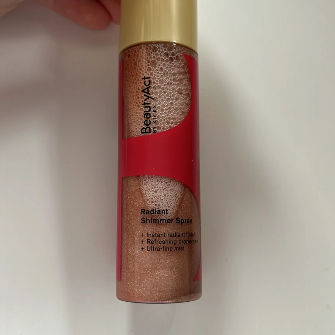 Glowig face mist i färgen Pink från BeautyAct. Ger en skimrande finish med ultrafina pärlor och innehåller vitamin E. Perfekt för att fräscha upp huden och ge ett naturligt lyster. Kommer i en 50 ml plastflaska med gul kork och rosa detaljer. Nypris 179kr. Helt oanvänd.
