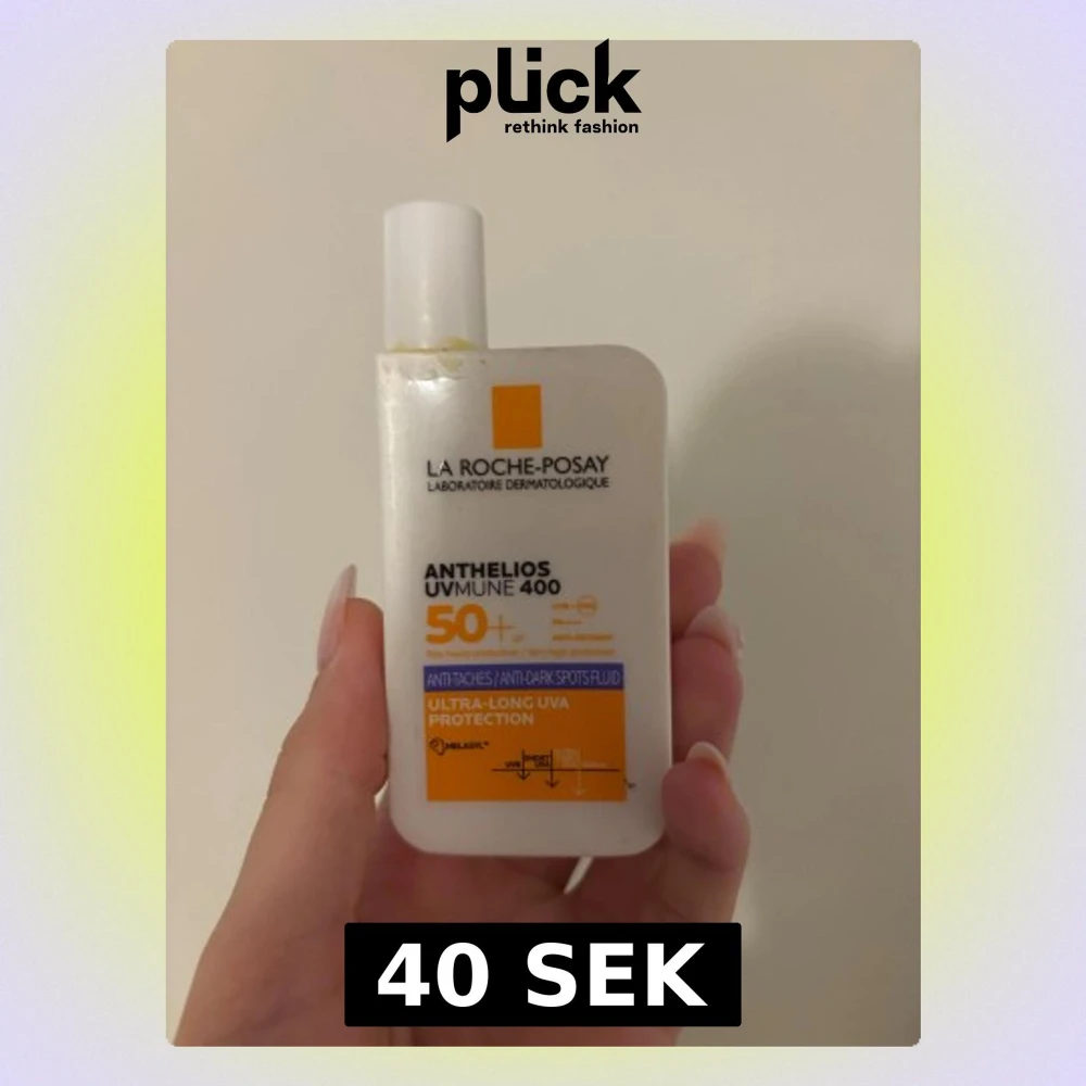 Anthelios UVmune 400 SPF 50+ från La Roche-Posay är en ansiktsfluid med ultra-lång UVA-skydd. Kommer i en vit och orange plastflaska med skruvkork, 50 ml. Formulan är lätt och passar perfekt under smink för extra solskydd och anti-dark spots effekt. Ni ser hur mycket jag har använt på sista bilden