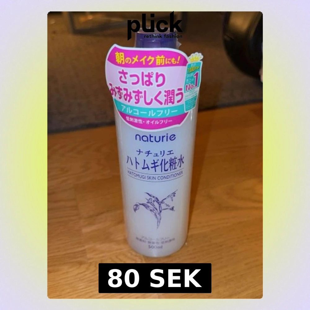 Stor flaska med Naturie Hatomugi Skin Conditioner, en alkoholfri toner som återfuktar huden. Innehåller 500 ml och är perfekt för att ge huden en fräsch känsla innan smink. Nypris: 95kr
