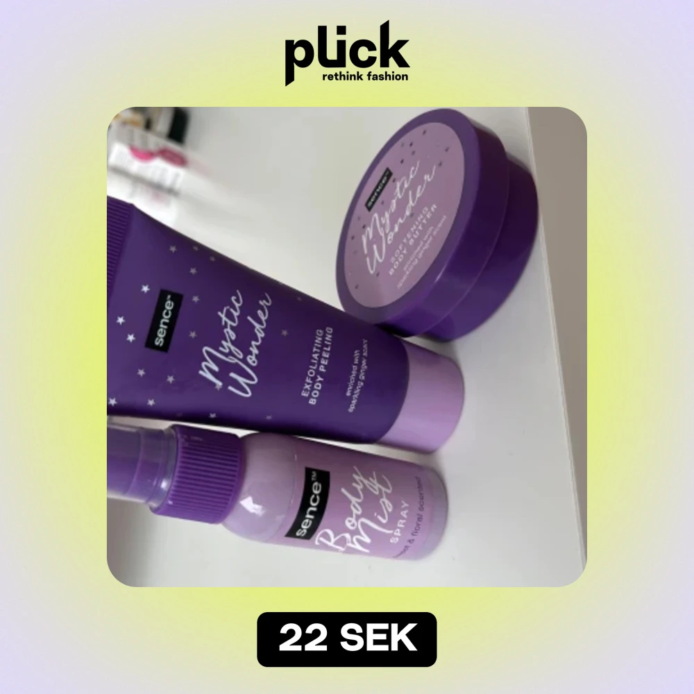 Upptäck Mystic Wonder Body Care Set från Sence! Setet innehåller en exfolierande body peeling och en body butter, båda i en härlig lila förpackning. Peelingen är perfekt för att fräscha upp huden och body buttern ger en mjuk och återfuktad känsla. Dessutom ingår en body mist med en fräsch doft. Perfekt för en lyxig hemmaspa-upplevelse!