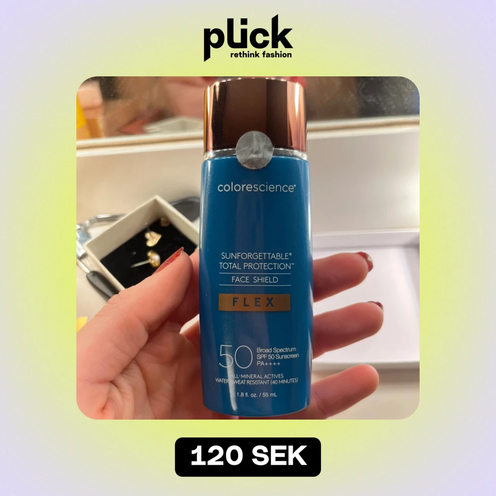 Skydda huden med Colorescience Sunforgettable Total Protection Face Shield FLEX. Den har SPF 50 och är vattenresistent i 40 minuter. Perfekt för medium hudtoner och ger ett jämnt skydd mot solens strålar. Innehåller mineralaktiva ingredienser för optimal hudvård. Använd ca 2 gånger så typ allt kvar!🥰