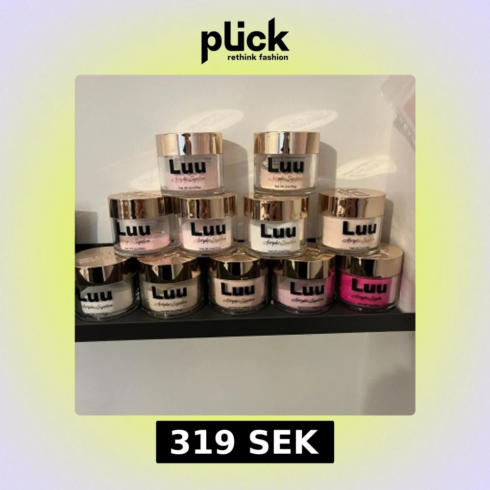 Säljer flera burkar Luu Acrylic System akrylpulver i olika färger som Blush Pink, Peach Kiss och Extra Kiss. Färgerna går i rosa, nude, vitt och en starkare rosa. Säljer på grund av att jag har inget nöd av d längre. Vissa är använda, vissa är oanvända.