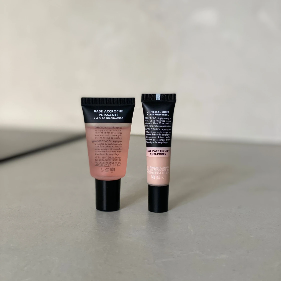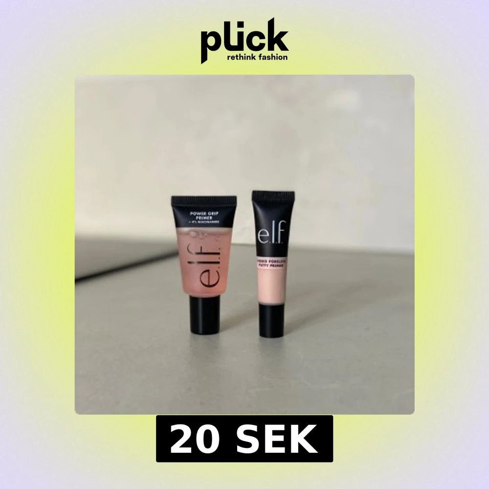 Två primers från e.l.f.: Power Grip Primer med 4% niacinamide i en rosa tub och Liquid Poreless Putty Primer. Smidiga tuber som är enkla att ta med i väskan.