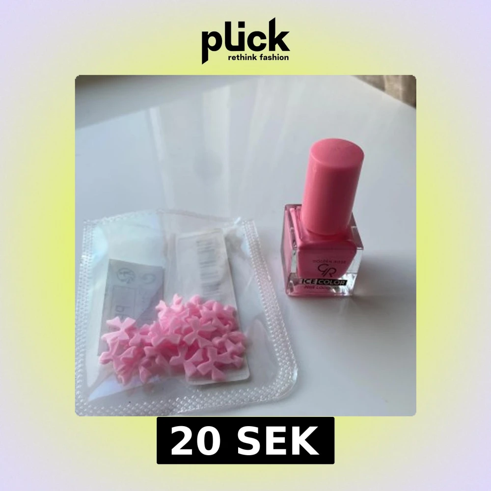 Rosa nagellack som jag använt ca 1 gång, dvs mycket kvar. Nail-charmsen är från shein. Säljer båda för 20!