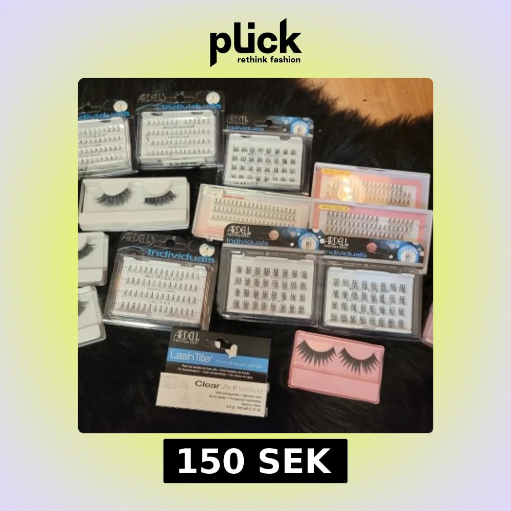 Säljer ett stort kit med Ardell lösögonfransar, både individuella och hela fransrader. Flera olika längder och tjocklekar, svart färg. Inkluderar även franslim och olika stilar från naturliga till dramatiska. Perfekt för att skapa din egen look.