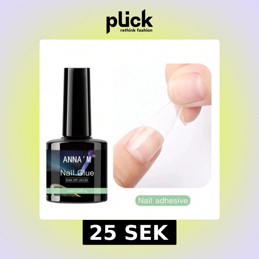 Testat på 1 nagel bara så den är full 💞UV Nagellim från ANNA M, perfekt för att fästa nagelplattor. Produkten är en soak-off gel som fungerar med både LED och UV-lampor. Volymen är 7,5 ml och den kommer i en smidig flaska som är 6,7 cm hög.