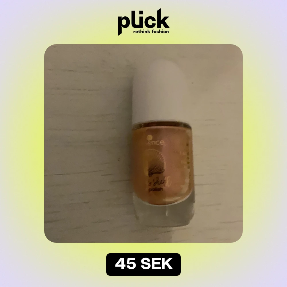 Säljer ett superfint nagellack från Essence i en skimrande guldig nyans. Perfekt för att ge dina naglar en glittrig och elegant look. Flaskan är liten och smidig med en vit kork. Passar både till vardags och fest!