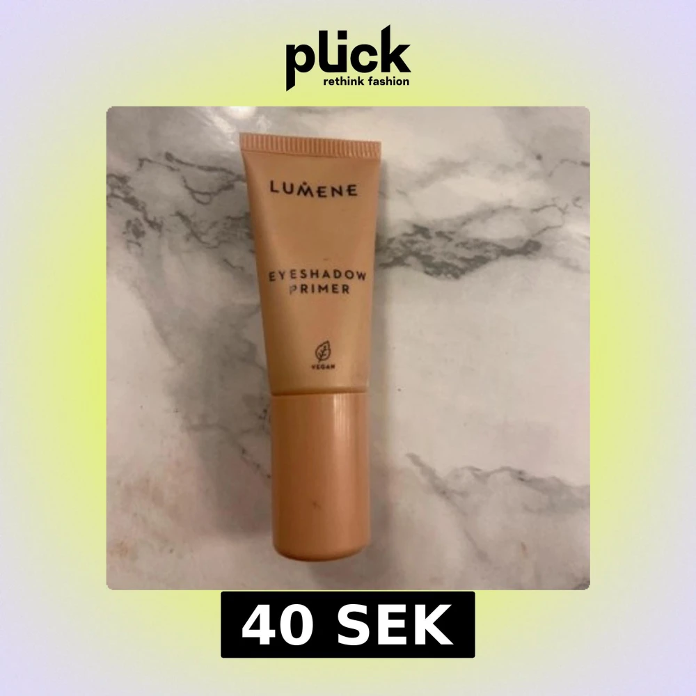 Lumene Eyeshadow Primer i en beige tub på 8 ml. Denna veganska primer är speciellt framtagen för att få ögonskuggan att sitta bättre och hålla längre. Kommer i en smidig plastförpackning som är lätt att ta med i sminkväskan.