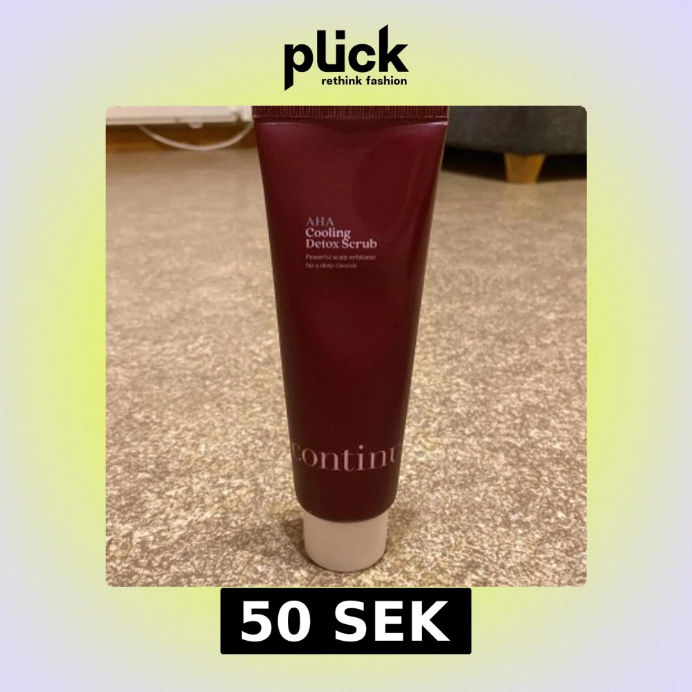 AHA Cooling Detox Scrub från Continu är en hår- och hårbottenskrubb från kicks som inte säljs längre Innehåller AHA, hyaluronsyra och pepparmynta. Vegansk och tillverkad i Sverige. Har använt några få gånger så det är mycket produkt kvar. Nypris: ca 250 kr