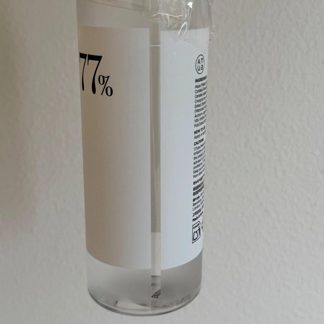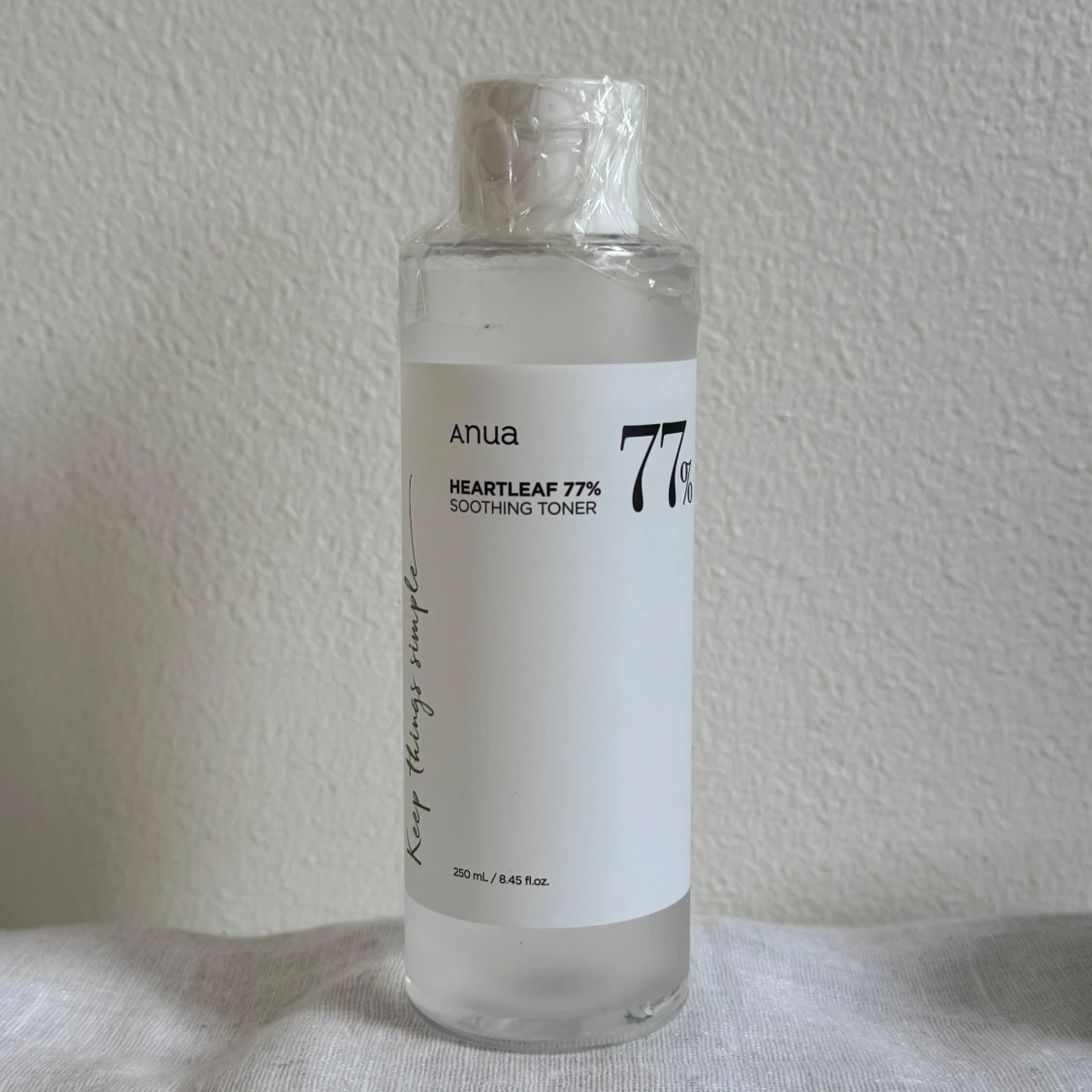Anua Heartleaf 77% Soothing Toner. Innehåller 250 ml. Tonern är vattenliknande och passar perfekt för att lugna och återfukta huden. Minimalistisk design och enkel att använda i din hudvårdsrutin. Testad några gånger. Se bild på hur mkt som e kvar. 80% minst