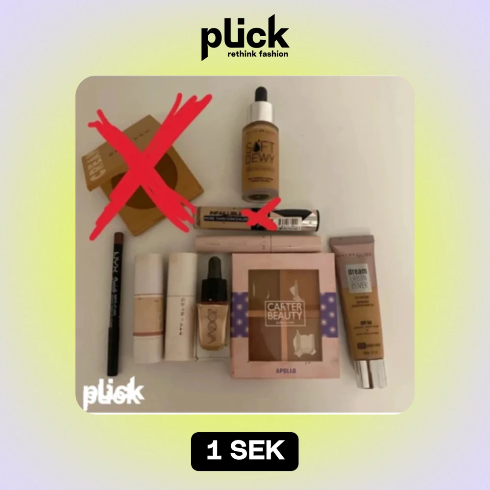 Säljer dessa sminkprodukter som inte används längre:, två foundations, concealer från Loreal Paris,browgel från nakd,cream blush och contour, Liquid highlighter,bronzer palette,nyx lipliner,Pris kan diskuteras!