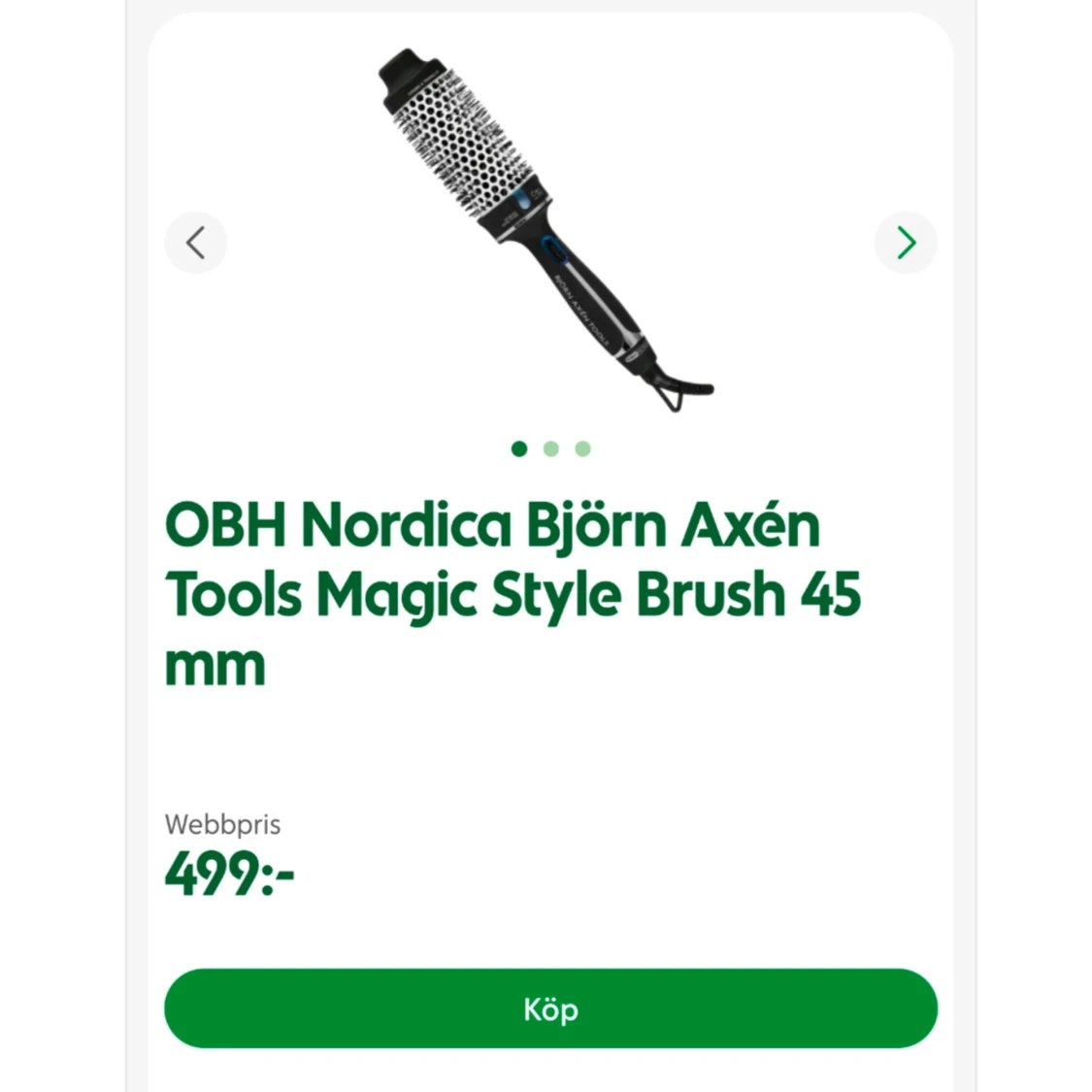 OBH Nordica Björn Axén Tools Magic Style Brush 45 mm är en keramisk (Tourmaline) värmeborste för enkel styling. Stylingborsten är en kombination mellan en locktång och en rundborste, så att du kan styla håret, ge det en snygg form och släta ut frissighet så att håret blir blankt och fullt av glans. Joniseringstekniken motverkar att håret blir statiskt. Borsten värms upp snabbt till 185°C och är redo att börja användas efter ca 30 sekunder. Borsten ska användas i torrt hår. Använd 1 gång, som ny.