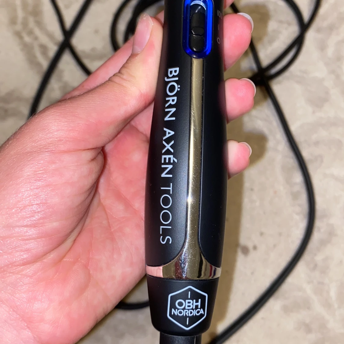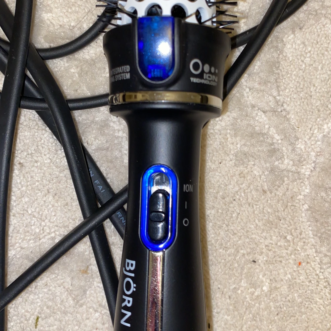 En svart och silver värmeborste från Björn Axén Tools. Borsten har rund form med svarta piggar och vit borstkropp. Perfekt för att styla och ge volym till håret. Ergonomiskt handtag och lång sladd för enkel användning. Orginalpris: 799