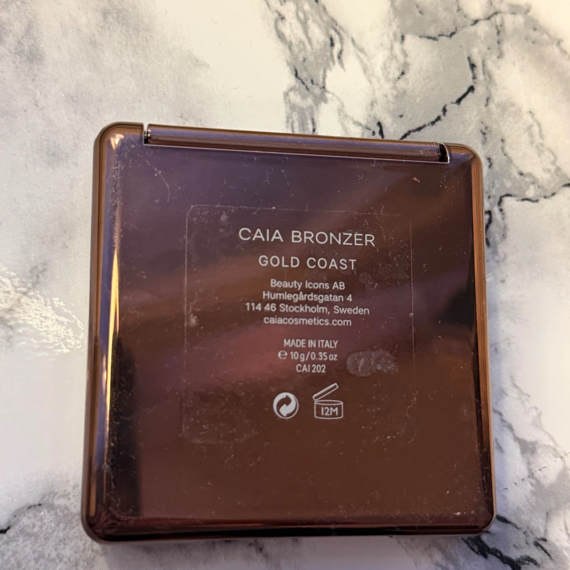 Snygg bronzer från CAIA i nyansen Gold Coast. Kommer i en lyxig, fyrkantig brun metallic dosa med spegel. Pudret har en varm, gyllene ton och en vågig, pressad yta. Perfekt för att ge ansiktet en solkysst look.