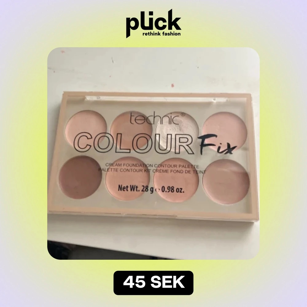 Säljer en Technic Colour Fix Cream Foundation Contour Palette. Den har åtta olika nyanser av krämfoundation som är perfekta för contouring. Paletten är kompakt och lätt att ta med sig, vilket gör den idealisk för både vardagsbruk och resor. Färgerna är i olika toner av beige och rosa, vilket gör det enkelt att hitta rätt nyans för din hudton.