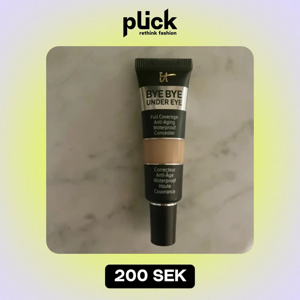 Säljer en Bye Bye Under Eye Concealer från IT Cosmetics. Den är i nyansen Medium (N) och kommer i en 12 ml tub. Denna concealer är känd för sin fulla täckning och anti-aging egenskaper. Den är också vattenfast, så den håller hela dagen! Enbart testad