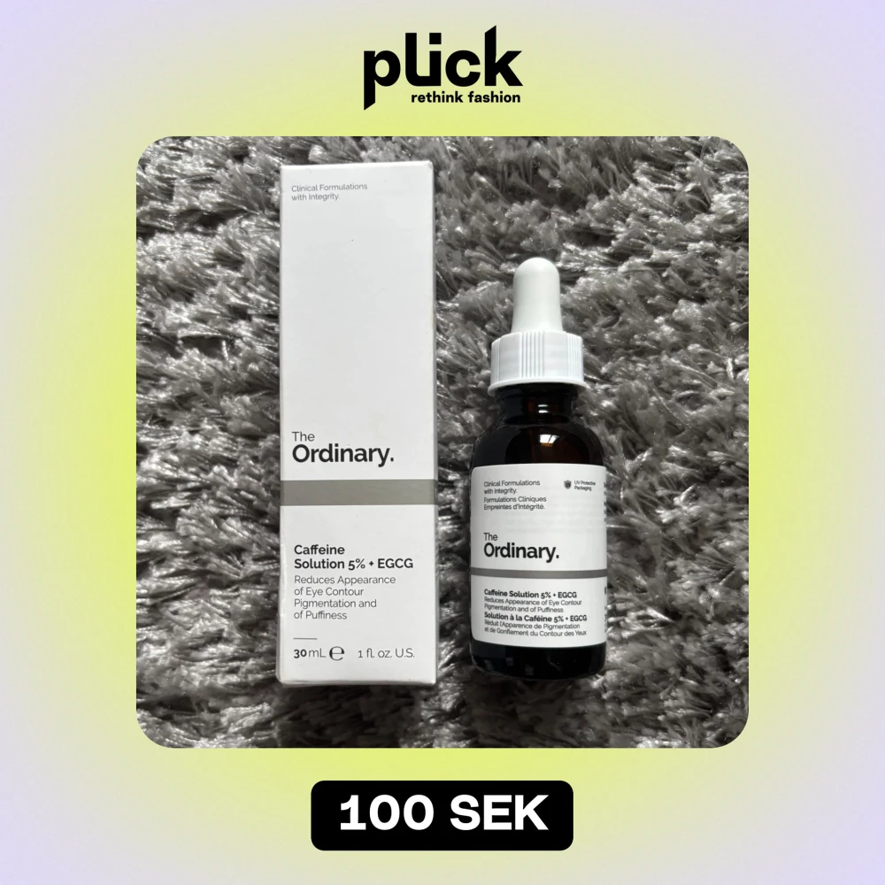 Säljer en flaska Caffeine Solution 5% + EGCG från The Ordinary. Denna produkt är perfekt för att minska mörka ringar och svullnad runt ögonen. Kommer i en brun glasflaska med pipett för enkel applicering. Perfekt för daglig användning för att fräscha upp ögonområdet. Säljer då jag använder andra produkter. Nypris 120 kr