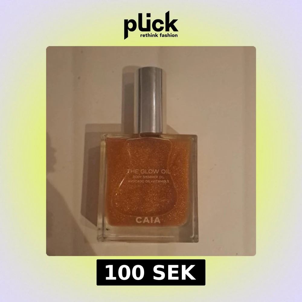 The Glow Oil från CAIA är en skimrande kroppsolja med avokadoolja och vitamin E. Den kommer i en fyrkantig glasflaska med silverfärgad kork. Perfekt för att ge huden en glittrande finish.