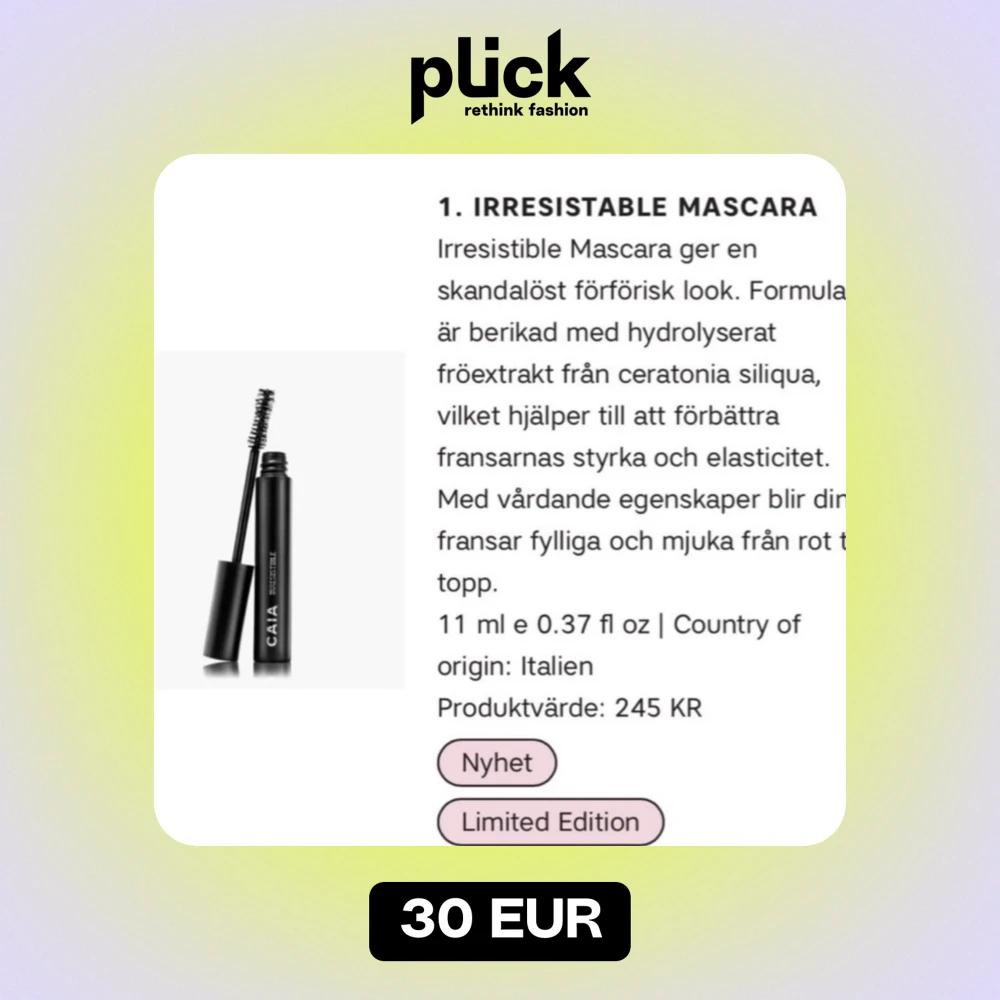 Irresistible Mascara från CAIA , helt oöppnad säljer pga av att jag har alldeles för många mascaror🫶🏻(ps limited edition, fått ur kalendern)