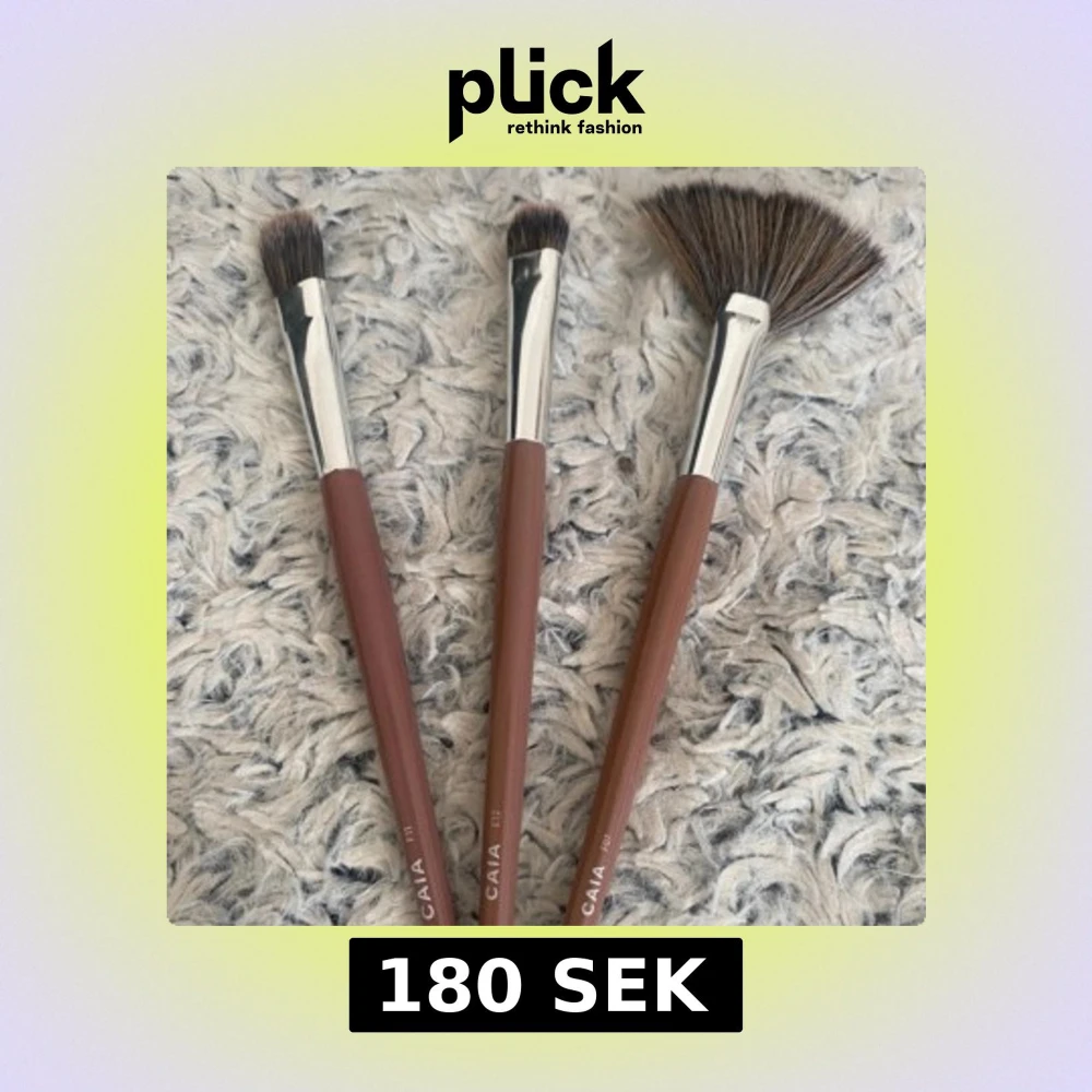Säljer ett set med tre sminkborstar från CAIA. Borstarna har bruna handtag och silvriga detaljer. Setet innehåller två täta borstar för ögonskugga och en solfjäderformad borste perfekt för highlighter. Borststråna är mjuka och syntetiska.F11,E13,F07.Säljer engast ihop inte en o en.