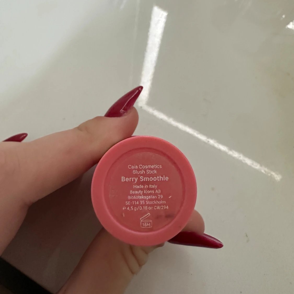 Blush stick frĂ„n caia i fĂ€rgen berry smoothie. Men ser pĂ„ första o andra bilden hur mycket produkt som finns kvar, super fin men sĂ€ljer dĂ„ jag har en annan fĂ€rg som passar mig bĂ€ttređ