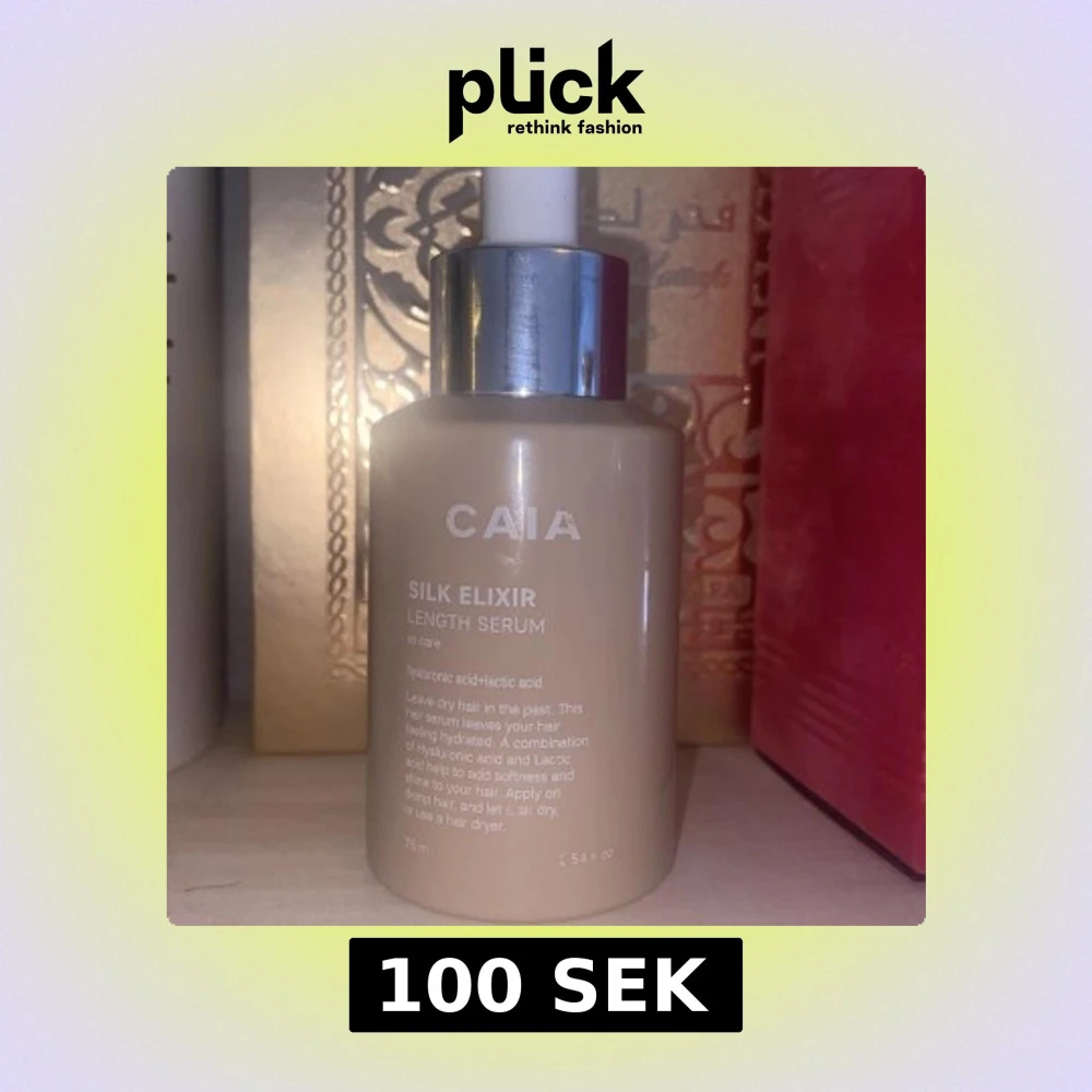 CAIA Silk Elixir Length Serum är ett mjukgörande och återfuktande serum för håret med hyaluronsyra och vegansk mjölksyra. Kommer i en beige flaska med pipett och har en lätt formula som minskar frissighet och ger glans. Perfekt för dig som vill ha mjukt och återfuktat hår. Den har använts ett fåtal gånger men det är fortfarande mycket kvar i den. Nypris 225 men jag säljer den för 100kr❤️