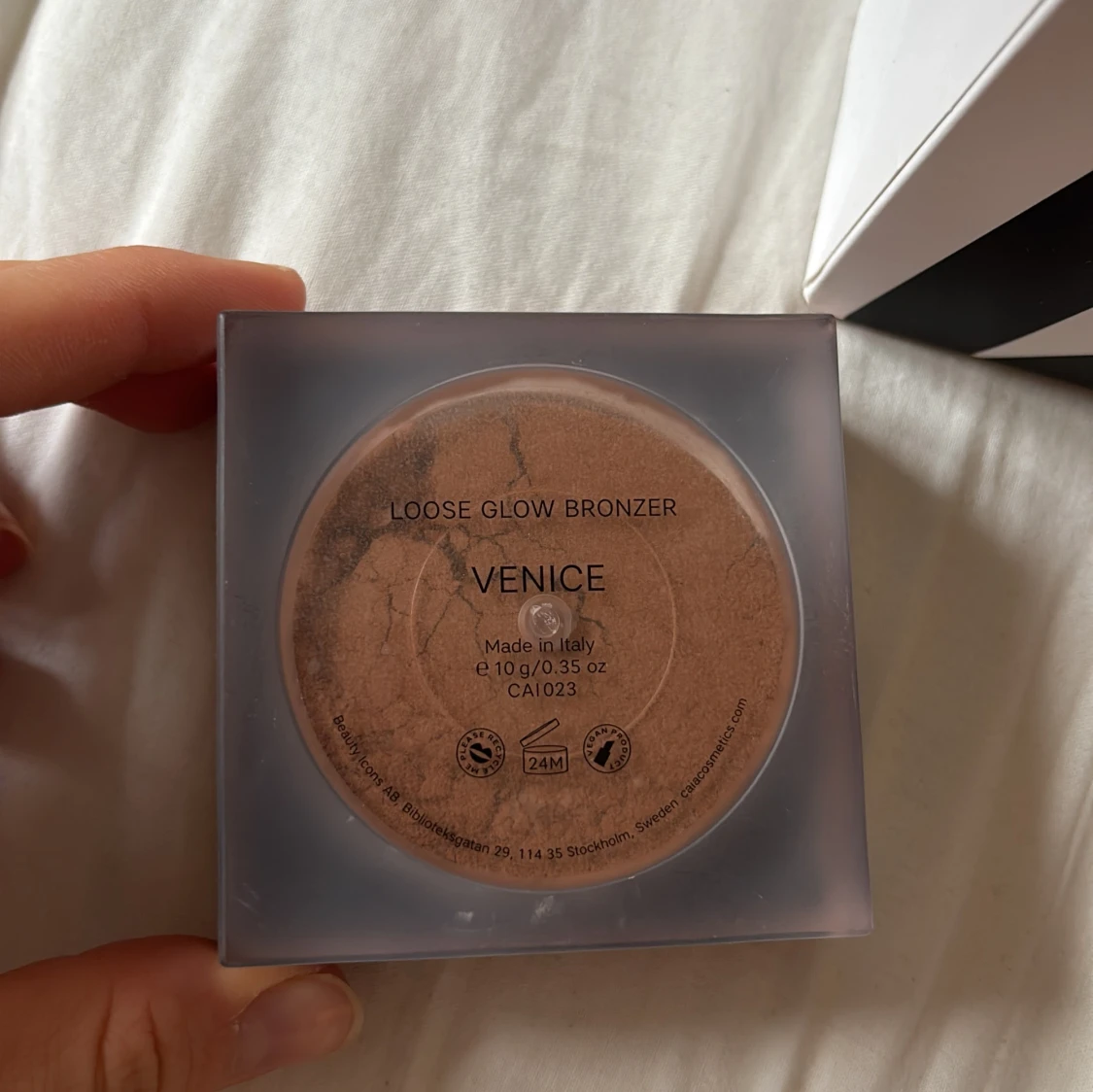 Caia loose glow bronzer i färgen Venice. Aldrig använd och helt ny och ren. Väldigt fin färg och jämnar ut huden väldigt fin till en perfekt nyans. Använder aldrig✨
