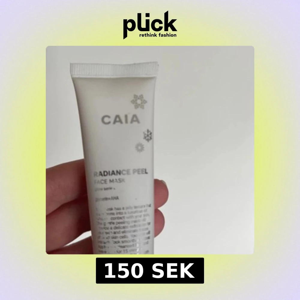 Limited edition Radiance Peel Face Mask från CAIA i en vit tub med silvriga snöflingor. Masken innehåller AHA-syra och har en geléliknande konsistens som förvandlas till olja vid applicering. Perfekt för dig som vill boosta glow och fräschör i huden.