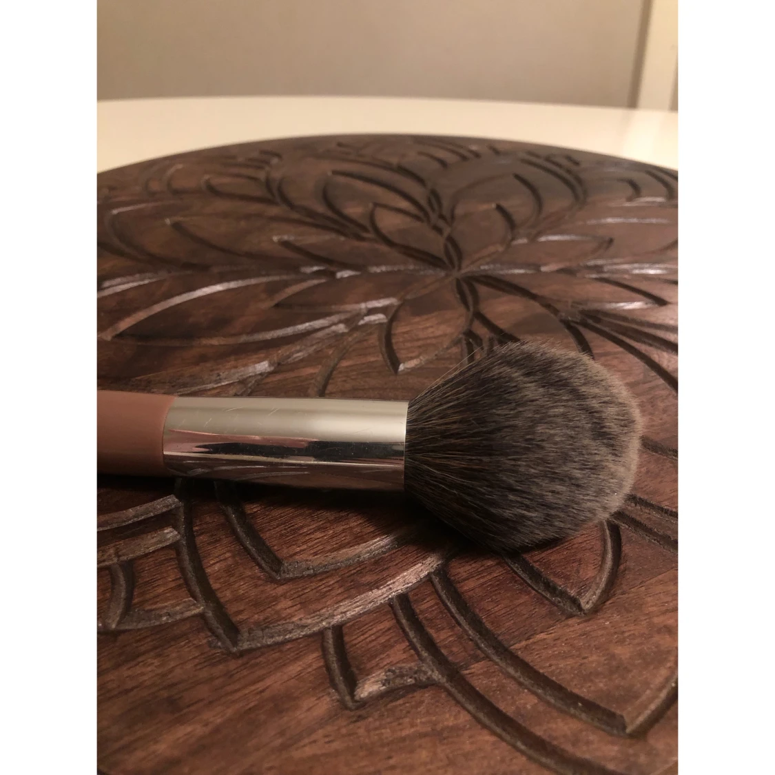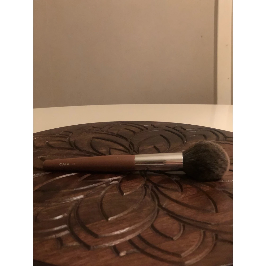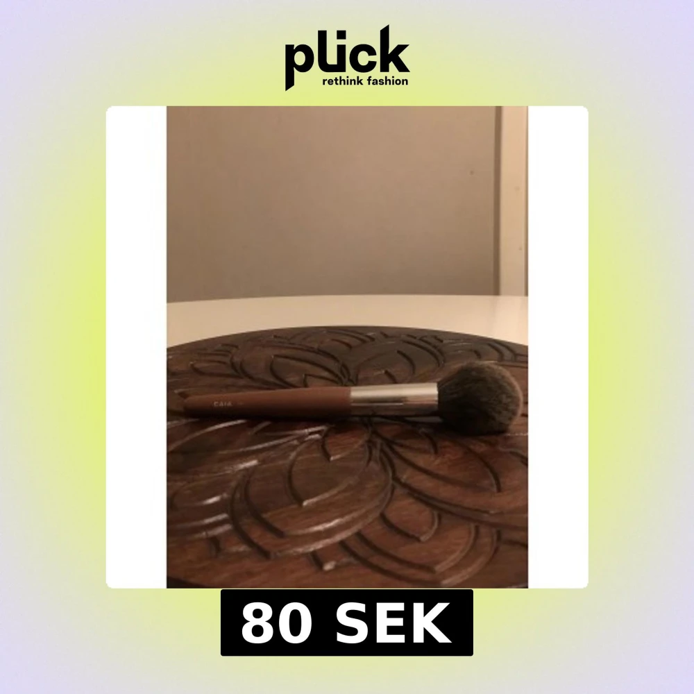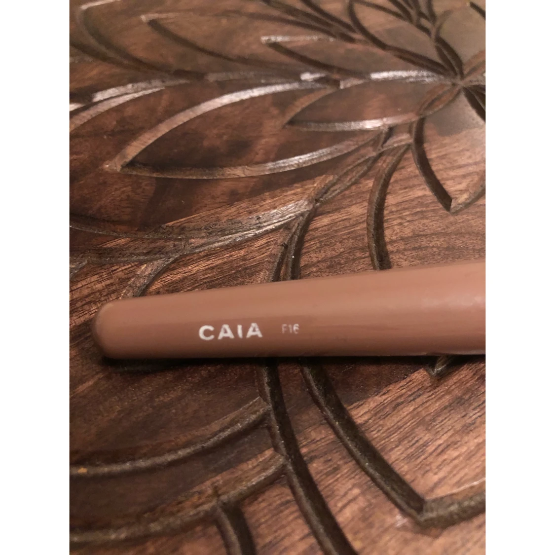 Sminkborste från CAIA, modell F16, med mjuka borst i gråbrunt och ett brunt handtag. Borsten har en rundad form och metallfäste i silver. Perfekt för applicering av puder, bronzer eller rouge. Snygg och stilren design som känns lyxig i handen.