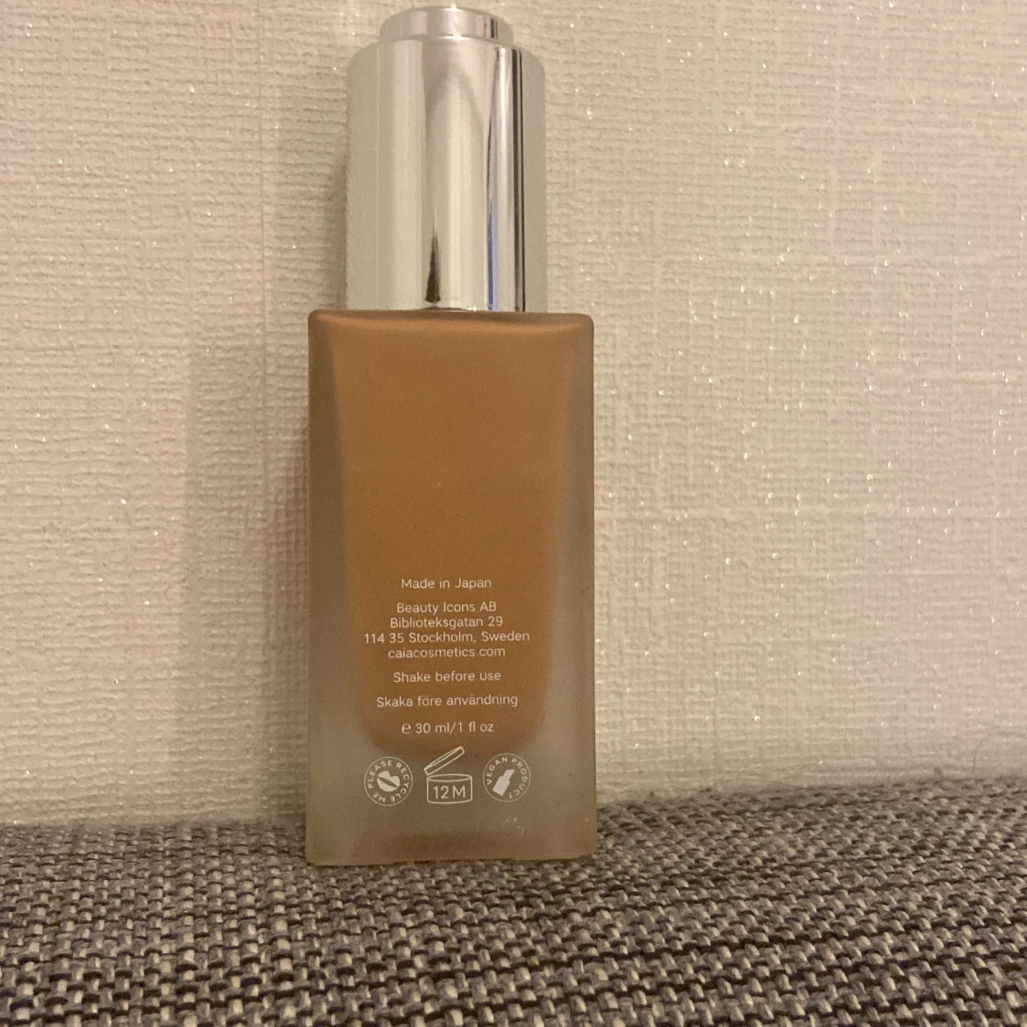 CAIA Dewy Drops Serum Foundation i nyansen 30C. Kommer i en snygg frostad glasflaska med silvrig pump. Ger en fräsch, daggig finish och innehåller vitamin E och glycerin för extra fukt. Perfekt för dig som vill ha en naturlig look med lyster. säljer så billigt för vill inte behöva slänga den då den är dyr o nästan helt oanvänd