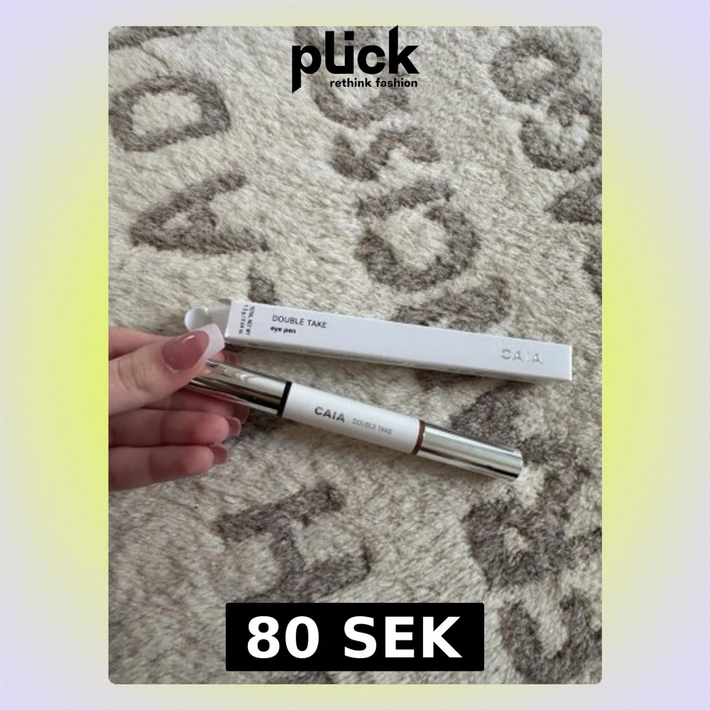 Säljer en CAIA Double Take Eye Pen med två ändar, perfekt för att skapa olika ögonlooks. Pennan har en vit och silver design med texten 'TO PM' på förpackningen. Ena sidan är brun, vilket passar för mjuka och naturliga linjer. Kommer i originalförpackning.