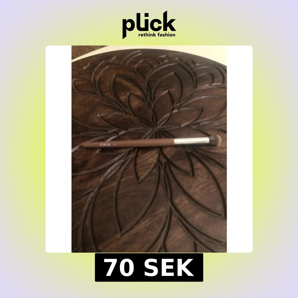 Säljer en CAIA F12 ögonskuggsborste med brunt skaft och silverfärgad metallhylsa. Borsten har mjuka, täta strån i beige och svart som är perfekta för att placera concealer. Stilren design som gör sminkrutinen extra lyxig.