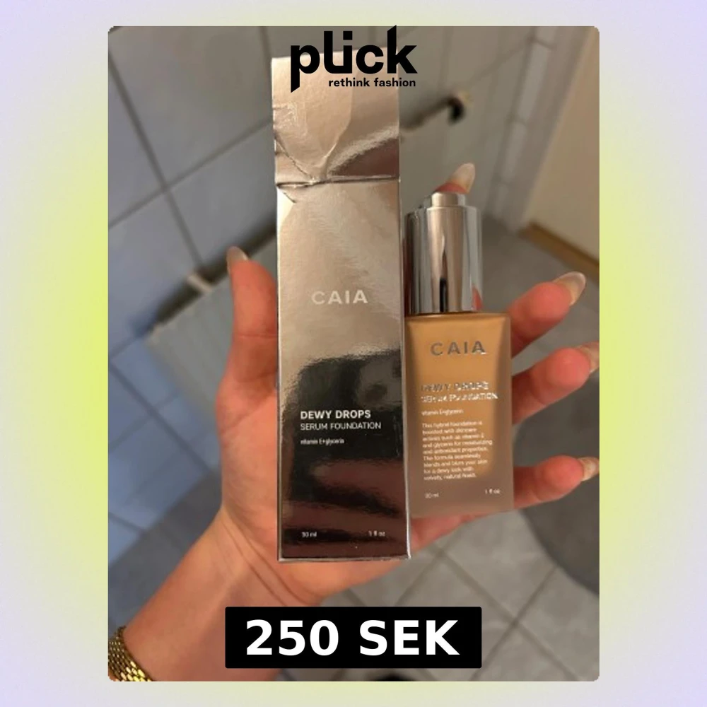 CAIA Dewy Drops Serum Foundation i nyansen 30N. Kommer i en lyxig frostad glasflaska med silvrig pump och tillhörande metallic-förpackning. Innehåller vitamin E och glycerin för återfuktning och glow. 30 ml, ger en naturlig finish med lätt lyster. Säljer pågrund av att de va fel färg för mig