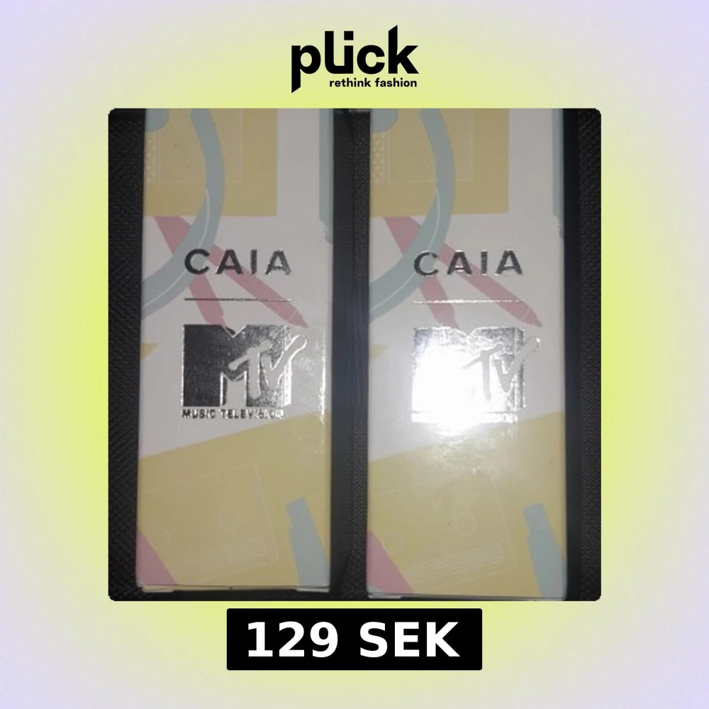 Två nagellack, gul och blå, från CAIA i samarbete med MTV. Förpackningarna har en retro design med pastellfärger och MTV-loggan. Perfekt för att ge dina naglar en färgglad och trendig look.
