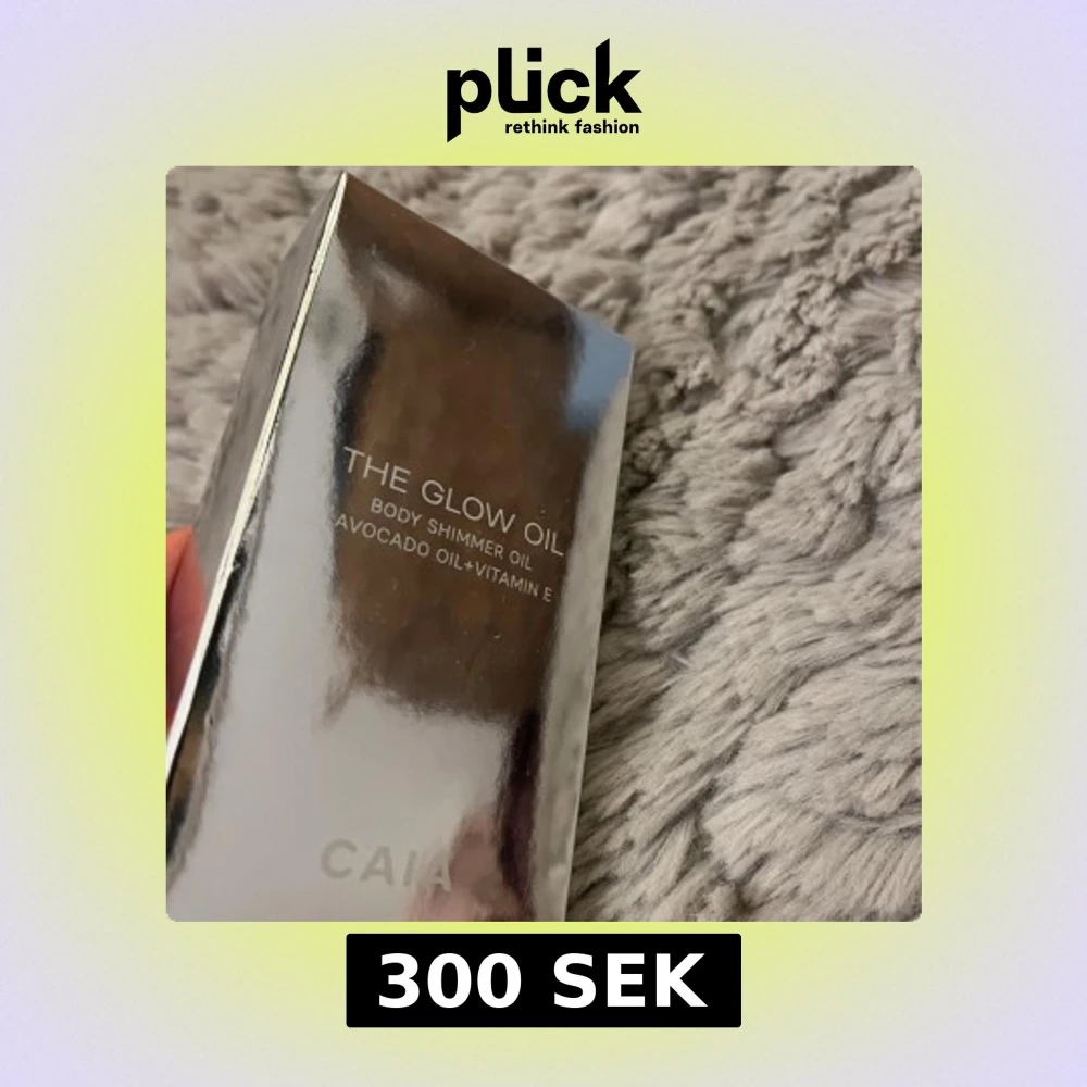 The Glow Oil från CAIA är en kroppsolja med skimmer, berikad med avokadoolja och vitamin E. Förpackningen är elegant och reflekterande, vilket ger en lyxig känsla.helt oanvänd limiterad