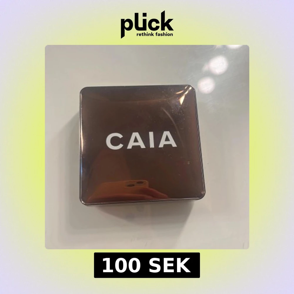 Snygg sminkpalett från CAIA i en stilren, fyrkantig brun metallic-förpackning med vit logga. Perfekt att ha i väskan för att snabbt fräscha upp sminket. Paletten har en lyxig känsla och är enkel att ta med sig.